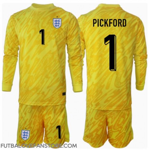 Anglicko Jordan Pickford #1 Brankarsky Vonkajší Detský futbalový dres ME 2024 Dlhy Rukáv (+ trenírky)