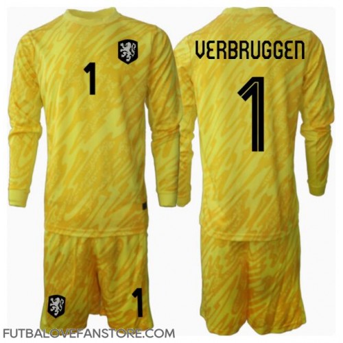 Holandsko Bart Verbruggen #1 Brankarsky Vonkajší Detský futbalový dres ME 2024 Dlhy Rukáv (+ trenírky)