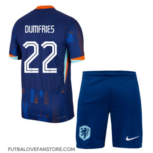 Holandsko Denzel Dumfries #22 Vonkajší Detský futbalový dres ME 2024 Krátky Rukáv (+ trenírky)