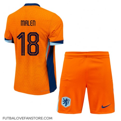Holandsko Donyell Malen #18 Domáci Detský futbalový dres ME 2024 Krátky Rukáv (+ trenírky)
