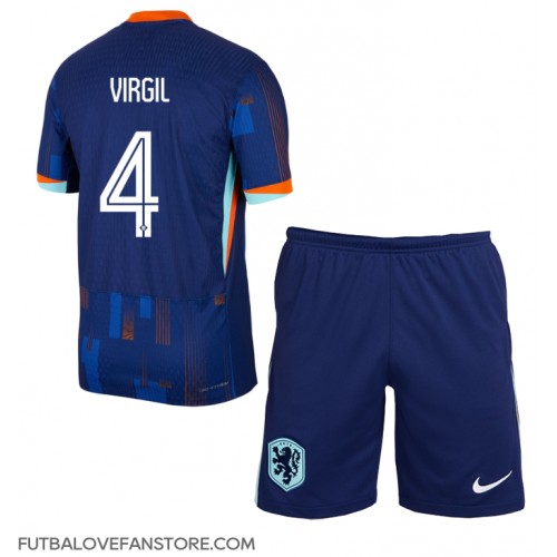 Holandsko Virgil van Dijk #4 Vonkajší Detský futbalový dres ME 2024 Krátky Rukáv (+ trenírky)